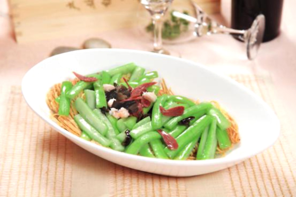 淮安茶馓創(chuàng)于清朝后期,距今有一百多年的歷史,1997年被認定為首屆中華名小吃。茶馓色澤嫩黃、造型秀麗、松酥香脆、獨具風味,搭配清香的絲瓜,十分可口。